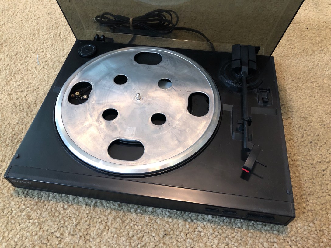 This Sony model is all plastic, outside of the platter, and very lightweight. I’ve used it for parts over the years so now it’s missing the mat and one hinge for the cover to open and close properly.