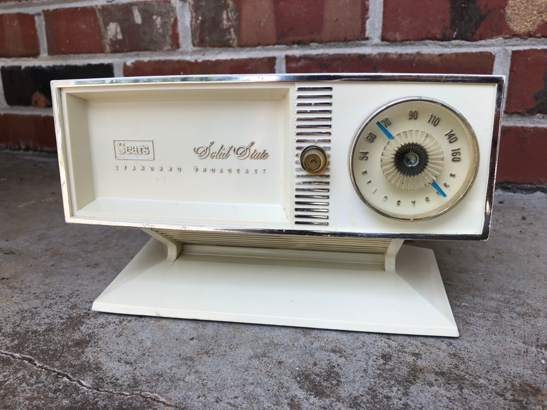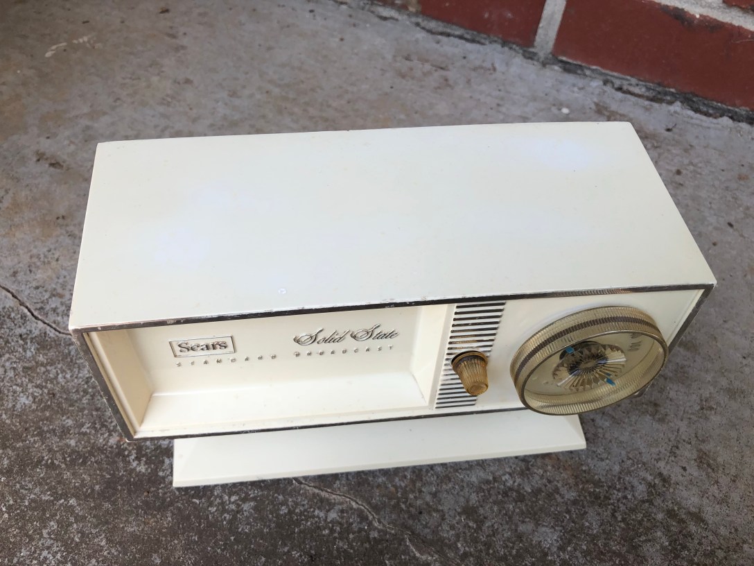 I recently received this cute little Sears solid state AM radio for repair. This radio is a solid state model and was manufactured between 1968-70. As you can hear in the video below, when she first arrived all she did was produce a very low hum. I knew this was due to a bad filter capacitor that needed to be replaced.