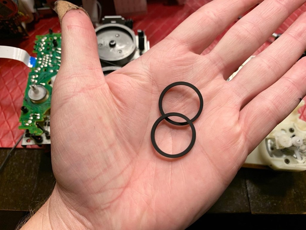 As I mentioned above, this deck uses much smaller belts for the Rewind and FF functions. If you look in the photo above, it’s the belt on the bottom right hand corner. See below for sizing…